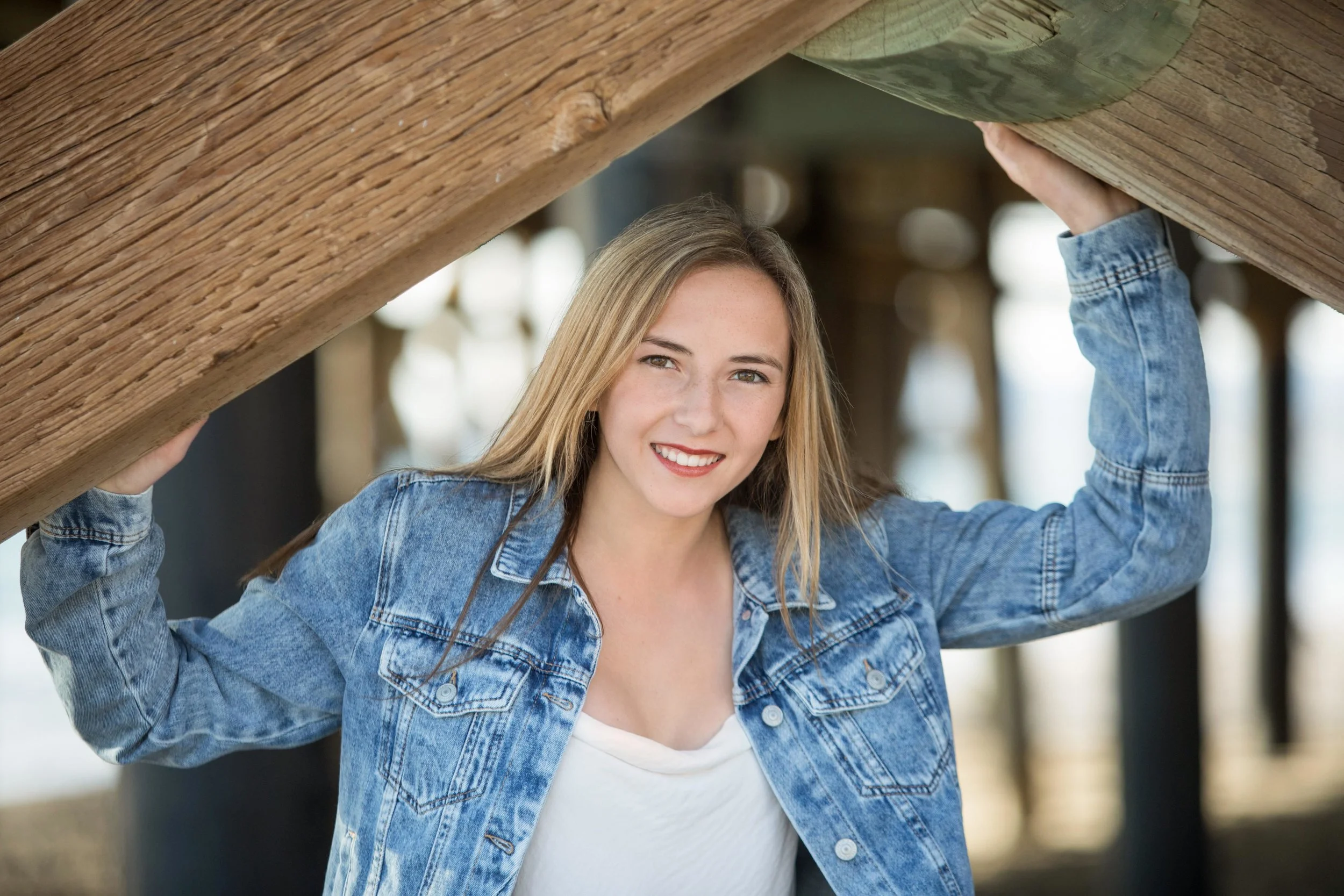 With rocks, sand, the architecture of the wooden pier and the sunset, Megan has beautiful memories of this important stage of her life.